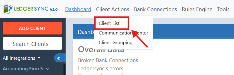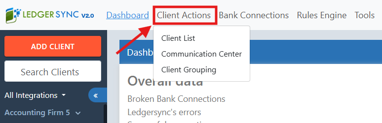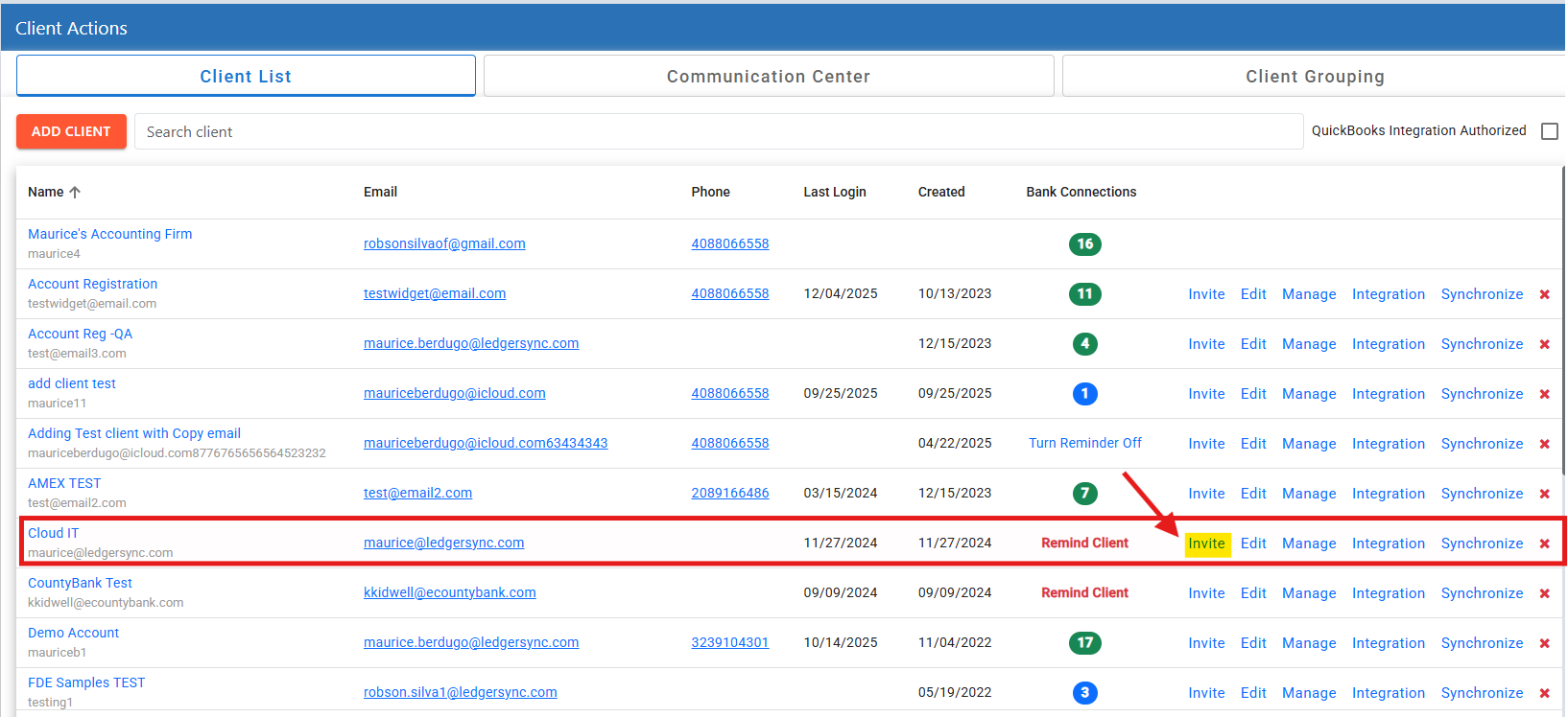 Purpose: How to invite a client to securely connect their own bank account through the LedgerSync application Follow the steps below: Log into the LedgerSync application. Navigate to Client Actions → Communication Center → Reconnect and Add Banks. ...