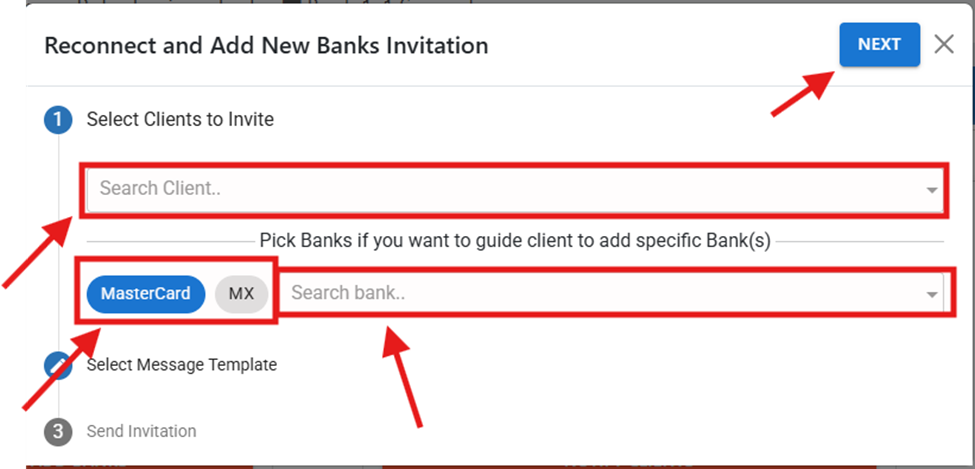 for and select the client you want to invite to add a bank