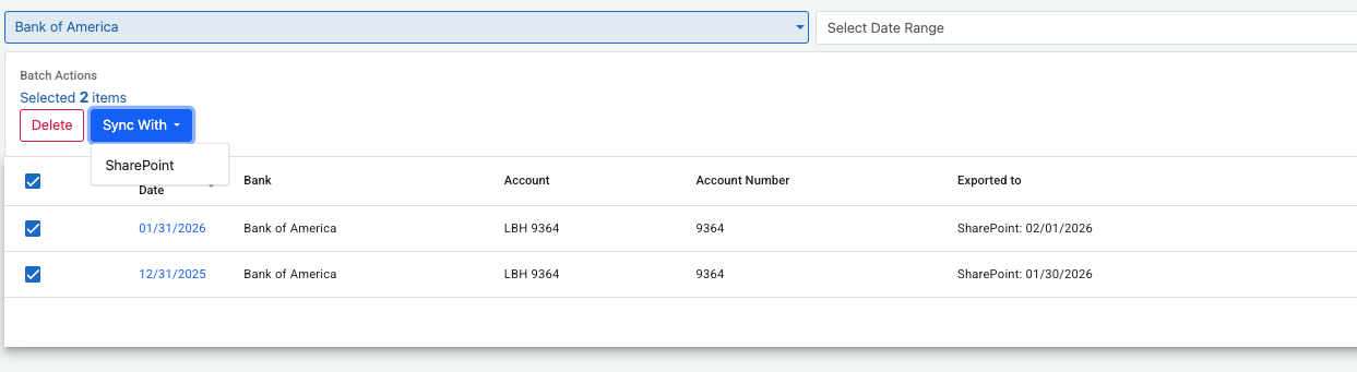 For example if you use Sharepoint, Ledgersync will download the bank statements to a Sharepoint Folder as soon as the statements arrives.