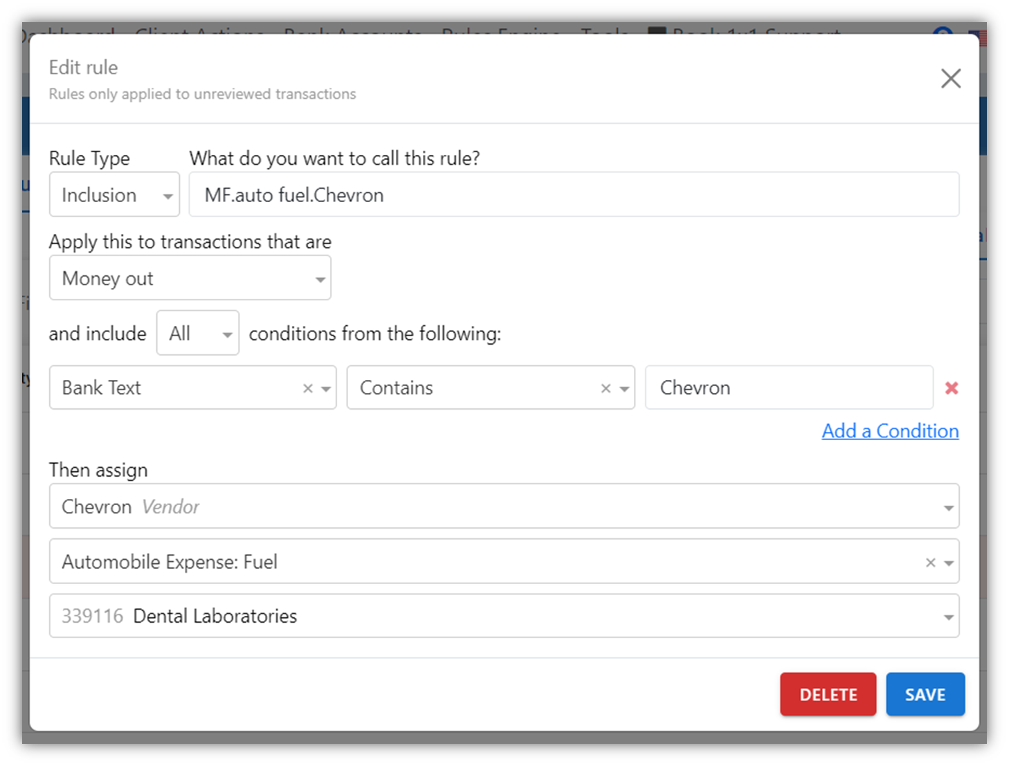 Applied To: Let's you know if the rule is specifically impacting Money In or Money Out transactions