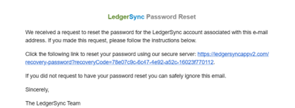 your inbox for “LedgerSync” or “Welcome” to locate your login details.