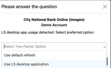 When connecting a bank via Premium you will be prompted to select the Ledgersync Desktop App. Select this option to run the bank in conjunction with your selected bank.