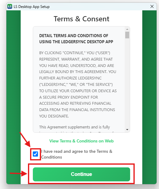 The first time the Desktop App opens, you’ll be asked to review and accept the Terms & Consent form.