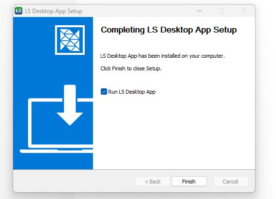 When installation is complete, click Finish to launch the LedgerSync Desktop App.