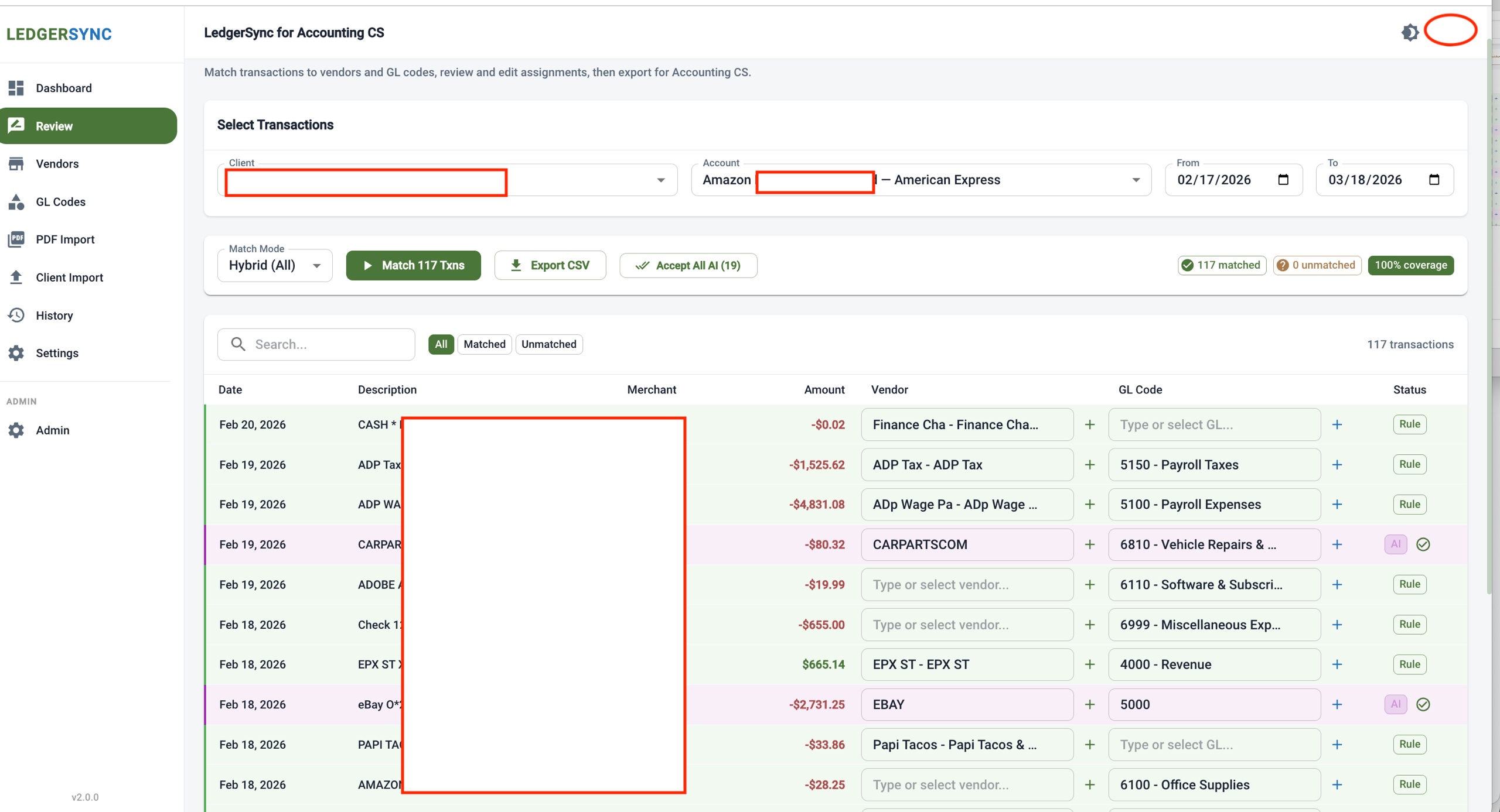 Once configured, LedgerSync runs automatically in the background, delivering transactions to Accounting CS so your team can focus on actual accounting work instead of data collection.
